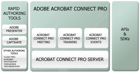 Adobe Connect software is a flexible web communication system with strong security features that provides enterprise solutions for training, marketing, sales, and enterprise collaboration. These solutions are available as a hosted subscription service or as licensed software that can be deployed on-site, behind a firewall. Explore the capabilities of Adobe Connect Server (licensed version or hosted service) and the three Adobe Connect modules: Adobe Connect Meeting, Adobe Connect Training, and Adobe Connect Events.